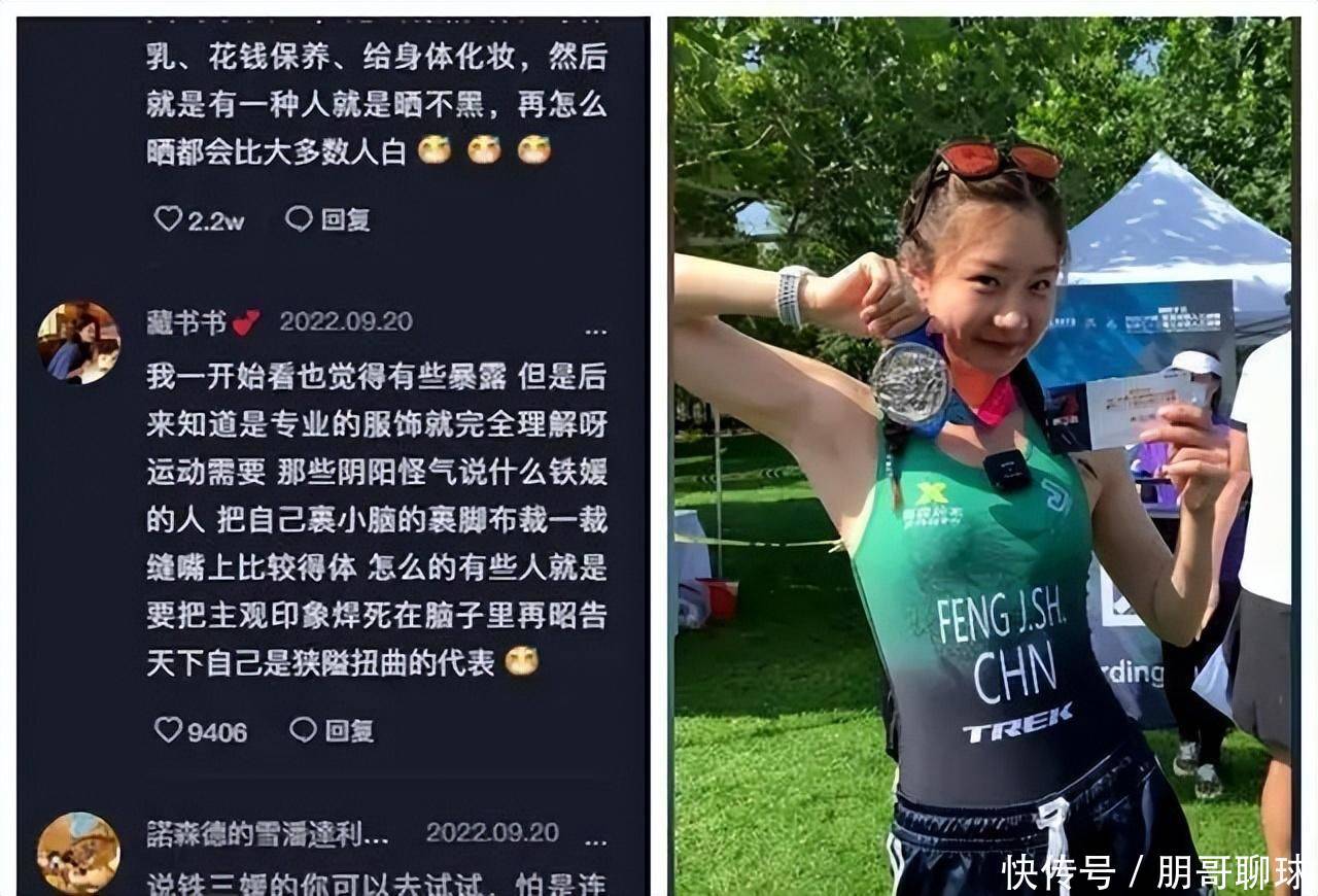 就在这两天,她更是冲上了体育热搜榜的榜首,原因非常简单,就是因为她在参加一个铁人三项比赛的时候,因为在跑步和自行车这个项目上,穿的一个衣服相对过于暴露,引起了大家的关注。我们看到这个衣服有点是类似于连体的泳衣,尤其是胯部这个位置是非常高的。所以有不少的网友表示,穿着这样的衣服去参加这种比赛是不是合适,作为网红想借助这个比赛,借助这个服装秀自己的身材,然后博出位的这种想法来博取流量呢?